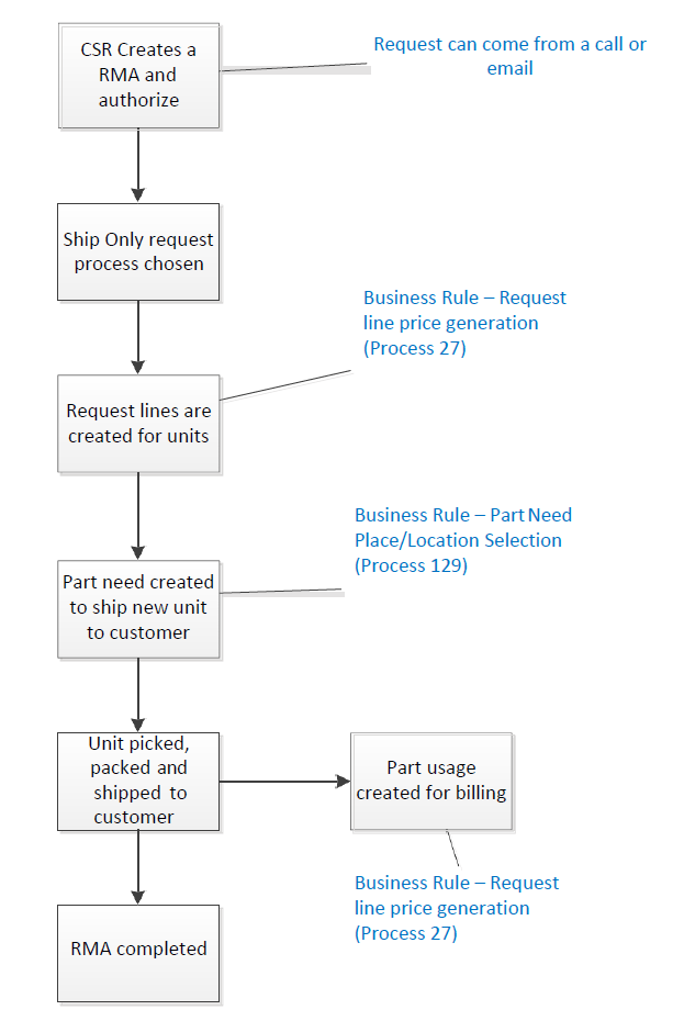 - When the unit is marked ready to ship, part needs are added to the RMA for shipping units to the customer.