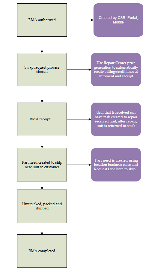 Swap is used when you want to receive an unusable unit from your customer and then ship a replacement, usable unit to your customer.
